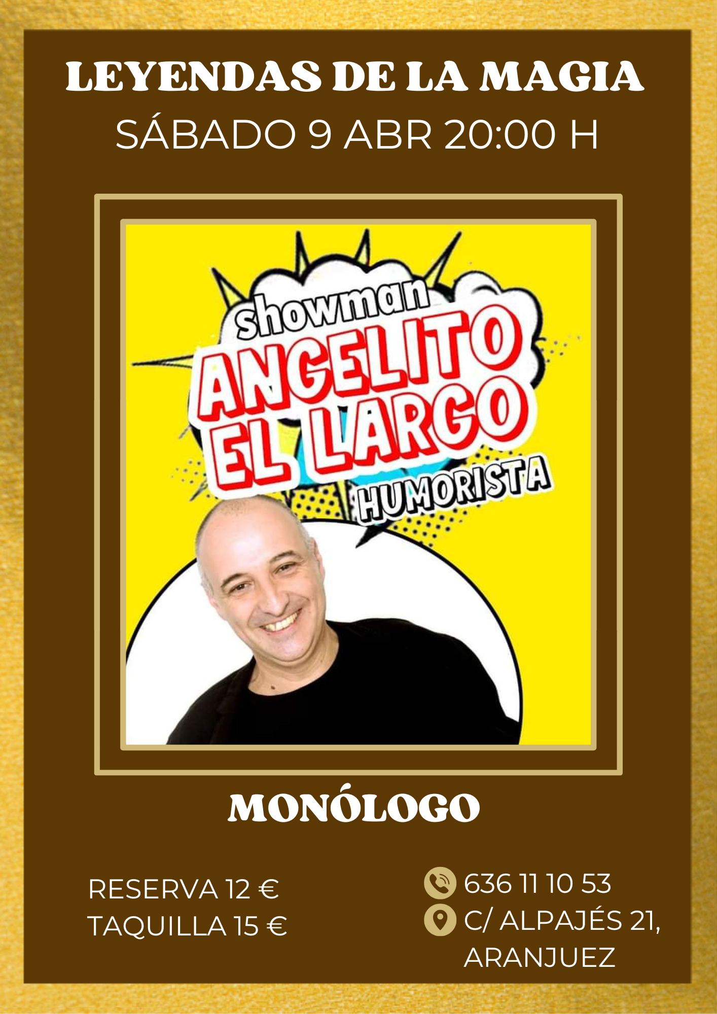 Prepárate para una noche de carcajadas con Angelito el Largo, un cómico que convierte lo cotidiano en puro espectáculo. Con un estilo fresco, desenfadado y muy cercano, su show mezcla monólogos, improvisación y situaciones absurdas que conectan desde el primer minuto con el público.